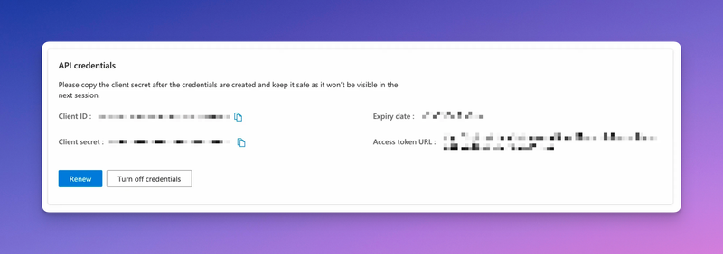 Once you click on the Create API credentials button, you'll have most of the information you'll need
